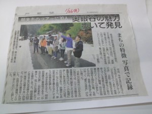 当日の様子は翌日の神戸新聞朝刊に「奥銀谷の魅力 歩いて発見」という題で掲載いただきました。